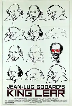 King Lear is a 1987 film directed by Jean-Luc Godard and produced by Cannon Films, an adaptation of William Shakespeare's play in the avant-garde style of French New Wave cinema. The script was originally assigned to Norman Mailer but Mailer's text was not used. The working script was written by Godard, assisted by Peter Sellars and Tom Luddy.[1] It is not a typical cinematic adaptation of Shakespeare's eponymous tragedy, although some lines from the play are used in the film. Only three characters – Lear, Cordelia and Edgar – are common to both, and only Act I, scene 1 is given a conventional cinematic treatment in that two or three people actually engage in relatively meaningful dialogue.