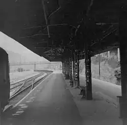 The railway originally approached the station across three creeks on low timber viaducts. Those at Longwood and Noss being demolished after the line was moved inland around the creeks on 20 May 1923, and Hoodown Viaduct, just outside the station, was replaced by a double-track steel structure in 1928. This and the provision of a larger turntable enabled larger locomotives to work through to Kingswear. The platform was extended in 1929 to 850 feet (259 m) which allowed longer trains too.