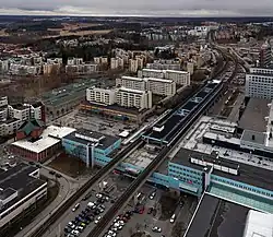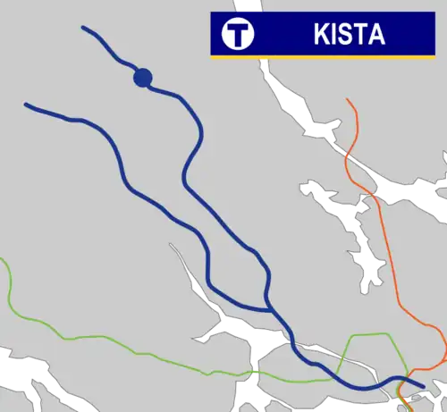 Kista metro station is a station on the blue line of the Stockholm metro, located in the district of Kista, northern Stockholm. The distance to Kungsträdgården is 15.9 km (9.9 mi). It was opened on 5 June 1977 as part of the extension from Hallonbergen to Akalla.[2][3] The station is the only one on the blue line above ground. There have been several safety incidents around Kista metro station, including shootings,[4] stabbings[5] and robberies.[6][7]