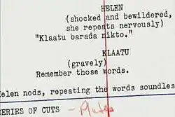 Script page of The Day the Earth Stood Still (1951) showing the phrase