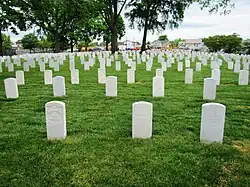 Knoxville National Cemetery is a United States National Cemetery located in the city of Knoxville, Tennessee, United States. Established during the Civil War in 1863, the cemetery currently encompasses 9.8 acres (4.0 ha), and as of the end of 2007, had 9,006 interments. The 60-foot (18 m) Union Soldier monument, which stands in the eastern corner of the cemetery, is one of the largest Union monuments in the South.[1] In 1996, the cemetery was added to the National Register of Historic Places as part of a multiple properties submission for national cemeteries.