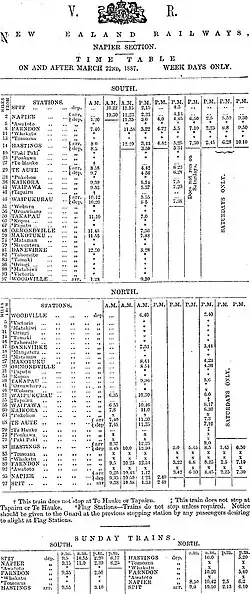 35. ^ "The Progress of the Napier-Woodville Railway. WAIPAWA MAIL". paperspast.natlib.govt.nz. 22 March 1887. Retrieved 16 September 2021.
