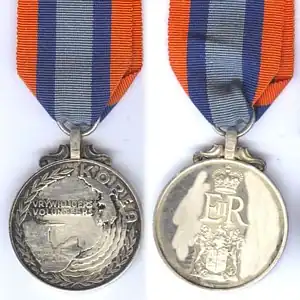 The Korea Medal is a military campaign medal which was instituted by the Union of South Africa in 1953. It was awarded to volunteers of the Union Defence Forces for service in Korea during the 1950-1953 Korean War.[1]