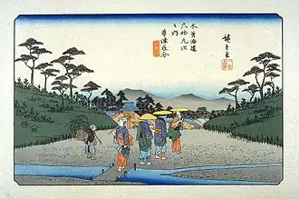 Hiroshige's print of Kusatsu-juku, in the Sixty-nine Stations of the Kiso Kaidō series