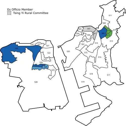 | Ex Officio | Tsing Yi Rural Committee Chairman | Chan Chi-wing | 1 January 2024 | Incumbent | Independent | |||