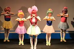 Her fashion sense is the subject of much media coverage. Kyary is often called "Japan's Lady Gaga",[109] citing her similar use of fashion to attract attention.[110] She has cited American singers Gwen Stefani, Katy Perry, and Lady Gaga as her inspirations in both music and fashion.[111] Kyary's fashion sense has also been criticized. While being interviewed on TV Asahi's Music Station, she was wearing an oversized ribbon on her head, which blocked Japanese boy band Kanjani8 from being seen on camera, angering fans of Kanjani8 by her outrageous fashion style. She later stated that when she is being interviewed on television, she would restrict what she is wearing.[110] Kyary's fans, however, defended her wearing the outfit.[110] Kyary cites "kawaii" (meaning "cute" or "cuteness") as her background style.[10]