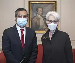 Kyaw Moe Tun with US Deputy Secretary of State Wendy Sherman in October 2021