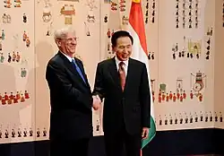 41. ^ "Presidente García condecoró a su homólogo de Hungría con la Orden el Sol del Perú". Andina (in Spanish). 24 September 2008. Retrieved 15 October 2023.
