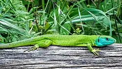 The earliest known members of the genus Lacerta are known from early Miocene epoch fossils indistinguishable in anatomy from the modern green lizards such as Lacerta viridis.[2] Some fossil species from the ice-age mediterranean, such as Lacerta siculimelitensis, reached especially large sizes.[3]