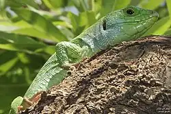 2. ^ Čerňanský A. 2010. "Earliest world record of green lizards (Lacertilia, Lacertidae) from the Lower Miocene of Central Europe". Biologia 65 (4): 737-741. doi:10.2478/s11756-010-0066-y