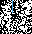 One well-known method of determining lacunarity for patterns extracted from digital images uses box counting, the same essential algorithm typically used for some types of fractal analysis.[1][4] Similar to looking at a slide through a microscope with changing levels of magnification, box counting algorithms look at a digital image from many levels of resolution to examine how certain features change with the size of the element used to inspect the image. Basically, the arrangement of pixels is measured using traditionally square (i.e., box-shaped) elements from an arbitrary set of sizes, conventionally denoted s. For each , a box of size is placed successively on the image, in the end covering it completely, and each time it is laid down, the number of pixels that fall within the box is recorded.[note 1] In standard box counting, the box for each in is placed as though it were part of a grid overlaid on the image so that the box does not overlap itself, but in sliding box algorithms the box is slid over the image so that it overlaps itself and the "Sliding Box Lacunarity" or SLac is calculated.[3][7] Figure 2 illustrates both types of box counting.
