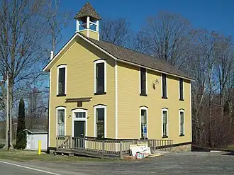 Built in 1889, this historic structure is a two-story, rectangular, frame, vernacular, building measuring 22 feet, 6 inches, by 42 feet, 6 inches. It sits on a sandstone foundation, and has a gable roof topped by a belfry that was rebuilt in 2004.[2]