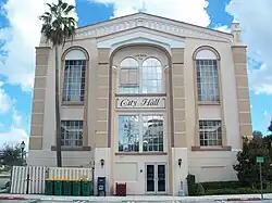 In the immediate aftermath of the storm, the Gulf Stream Hotel was converted to a makeshift hospital.[34]: 5 The devastation left Lake Worth without a functional center for city government, although records were mostly unscathed. Consequently, a temporary city hall was established at the Lauriston building.[41] The storm, combined with the Great Depression led to a severe economic decline within the community. Construction projects primarily shifted to repairing damaged buildings. However, there were a few conservation, construction, and New Deal projects during the 1930s.[5]: 16 This included when President Franklin D. Roosevelt's Works Progress Administration built the striking,[5]: 18 Moorish-styled "city gymnasium" on the corner of Lake Avenue and Dixie Highway. The building today serves as the Lake Worth Beach City Hall.[5]: 8