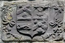 Richard II Pollard (d. 1660) (son), who married Joane Philipp, a daughter and co-heiress[30] of John Philipp of Plymouth, by whom he had issue 6 sons and 7 daughters. It is possibly he (or his father) who erected the surviving heraldic panel above the front door of Langley Barton showing the arms of Pollard in four quarters and the initials "RP". He may have been the Richard Pollard who between 1640 and 1651 was the "Gentleman Steward" to the princely household[31] of Henry Bourchier, 5th Earl of Bath (1593–1654) at Tawstock Court, 3 miles north of Langley.[32] However it is known that the wife of the steward Richard Pollard was Sara Voysin (d. 1652) (marriage at Swimbridge, near Tawstock, on 14 Apr 1646) of Geneva, Switzerland, a "gentlewoman of impeccable antecedents in Continental Protestantism",[33] who was an attendant of the Earl's wife, and whose surviving mural monument in Tawstock Church is inscribed as follows: