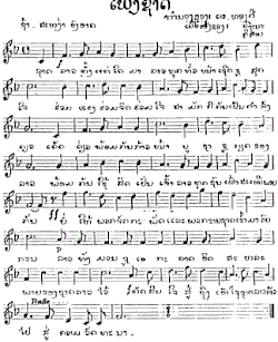 The Lao National Anthem (Lao: ເພງຊາດລາວ Pheng Xat Lao, pronounced [pʰeŋ saːt laːw]) is the national anthem of the Lao People's Democratic Republic. It was written and composed in 1941 by Thongdy Sounthonevichit. It was adopted as the national anthem of the Kingdom of Laos in 1945. The original lyrics were revised after the Communists triumphed in the Laotian Civil War and established the Lao People's Democratic Republic in 1975, with the new lyrics written by Sisana Sisane.[1]