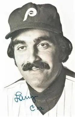 Larry Eugene Cox (September 11, 1947 – February 17, 1990) was an American professional baseball catcher and coach. He played all or parts of nine seasons in Major League Baseball (MLB), from 1973 until 1982. Cox threw and batted right-handed, standing 5 feet 11 inches (1.80 m; 180 cm) tall, and weighing 190 pounds (86 kg; 14 st), during his playing days.