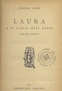 Laura a la ciutat dels sants (literally: Laura in the City of Saints) is a 1931 novel written by the Catalan writer Miquel Llor.[1] The work is rooted in realism and modernism, but it also has features of the 1930s, more influenced by Freud and other modern authors. Set in Vic, it follows the initial journey of Laura and her development as a person. The negative image of rural and catholic towns caused a controversy that made Llor write the second part, El somriure dels sants (1947), which clarified this pessimistic portrait.