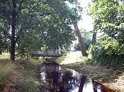 The Leśna Prawa River flows for roughly 33 km in Poland and a further 30 km in Belarus as a right-bank tributary of the Bug River through the Białowieża Forest. Its shallow, narrow channel—typically 0.5–1.5 m deep and 0.5–6 m wide—and limited discharge (around 0.5 cubic metres per second) are subject to inputs of treated municipal wastewater and agricultural runoff. These factors inhibit mixing and have led to persistently low water quality.[2]