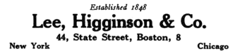 2. ^ "Lee, Higginson & Company Move. Now Occupy Spacious New Quarters". United States Investor. Frank P. Bennett & Company: 24–25. 1926. Retrieved 12 May 2022.