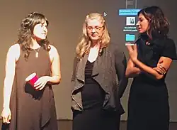 ![]() Left to right: Performance artist Xandra Ibarra, cultural anthropologist Adrian Van Allen, Dr. Boroditsky in 2017 | |