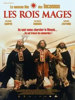 Les Rois mages (or The Three Magis, its unofficial English title) is a French comedy film released in 2001, made by Bernard Campan and Didier Bourdon. They also star in the film, playing the roles of Balthazar and Melchior respectively. Pascal Légitimus, the third member of the humorist group Les Inconnus, also stars in the film as Caspar.