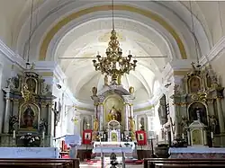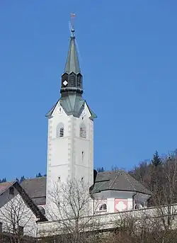 The local church is dedicated to Saint Ulrich (Slovene: sveti Urh). The original Late Gothic church was dedicated by the Bishop of Aquileia in 1517. The current church is of the same size, but dates to the late 17th century. It has a rectangular vaulted nave with an angular apse. The main altar dates to the late 19th century. The altar painting of Saint Ulrich is an early work by the Slovene Impressionist painter Ivan Grohar.[5]