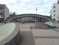 Although the film takes place in Blackeberg, a suburb of Stockholm, principal photography took place in Luleå (in the north of Sweden) to ensure enough snow and cold weather. The area where the filming took place dated from around the same time as Blackeberg, and has similar architecture.[12] However, Alfredson shot a few scenes in the Blackeberg area. In particular, the scene where Eli leaps down on Virginia from a tree, was shot in the town square of Blackeberg.[16] Another scene, where Eli attacks Jocke in an underpass, was shot in the nearby suburb of Råcksta.[12] The original Blackeberg underpass that Lindqvist had envisioned was deemed too high to fit in the picture.[16] Some of the outdoor close-up scenes were made in a super cold studio.[27] The jungle gym where much of the interaction between Oskar and Eli takes place was constructed specifically for the film.[20] Its design was intended to suit the CinemaScope format[20] better than a regular jungle gym, which would typically have to be cropped height-wise.[16]