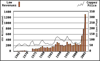 Cooper price and revenues of the Ley Reservada del Cobre according to Michael Radseck.[2]
