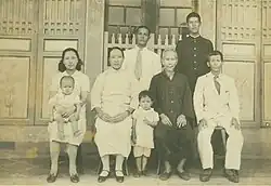 When he was three years old, Lee and his brother were sent by their grandfather, Li Tsai-sheng, to a school which taught Chinese and Japanese; they were required to memorize Confucian and Chinese classics, including the Three Character Classic.[10] Because his father, working in Taihoku Prefecture, was often transferred to different police precincts, Lee became a pupil at four different elementary schools in Xizhi (Hsi-chih), Nangang, Sanshi, and Tamsui.[11] In 1929, while attending the Hsi-chih Common School, where most teachers were Japanese, he was selected as the class leader (head boy) and was considered one of the most outstanding students out of 47 pupils.[12] He learned Chinese calligraphy and Japanese history before being transferred eventually to the Tamsui Common School, where he graduated in March 1935, ranked second out of 104 students.[12] He sat the entrance examinations and applied to Taipei's top middle schools, but was rejected twice as the schools prioritized Japanese enrollment.[13] He continued studying for the examinations at a juku and, in 1937, enrolled in the private Kuo-min Middle School (now Datong High School) in Taipei, then in the Japanese Tamsui Middle School in 1938.[14] A classmate, Lin Kai-pi, recalled: "He was very diligent and rarely played with us. Though he was taciturn, he was congenial and honest. He seemed to be blessed with a retentive memory. Fifteen years after our graduation, I could no longer recognize him, but he still called me by my name".[15]