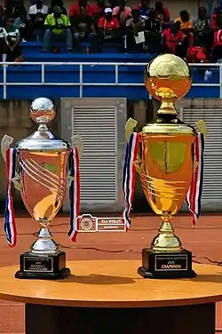The Liberian National County Sports Meet is the top knockout county tournament of the Liberian football inaugurated in 1956.[1] It is an annual sporting festival organized and hosted by the Ministry of Youth and Sports in collaboration with the Ministry of Internal Affairs. The event is primarily a platform intended to forge national unity and reconciliation in Liberia.