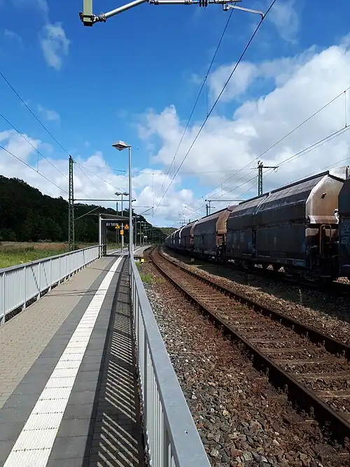 Lietzow (Rügen) (German: Bahnhof Lietzow (Rügen)) is a railway station in the town of Lietzow, Mecklenburg-Vorpommern, Germany. The station lies on the Stralsund-Sassnitz railway and Lietzow-Binz railway. The train services are operated by Ostdeutsche Eisenbahn GmbH.