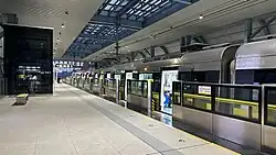 All stations have side platforms. and line 3 didn't have platform door before 2023, this line added platform door during 2023Tracks in the platform area have no ballast (gravel); however, tracks outside the station are on ballast. All stations are covered by a combination of transparent corrugated sheets and a concrete roof. Line 3's color is magenta.