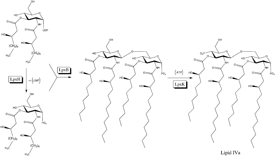 The enzymes involved in Lipid A synthesis are conserved among Pseudomonas aeruginosa, Escherichia coli, Bordetella bronchiseptica, and Salmonella.[4]