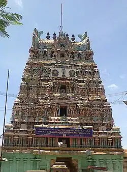 Amirthakadeswarar Temple (ta:சாக்கோட்டை அமிர்தகலேசுவரர் கோயில்) dedicated to the deity Shiva, located at Sakkottai. As per Hindu legend, the essence of creation arrived at this place in a pot (locally called kalayam), the place came to be known as Kalayanallur. Shiva is worshiped here as Amirthakadeswarar. His consort Parvati is depicted as Amirthavalli Amman. The presiding deity is revered in the 7th century Tamil Saiva canonical work, the Tevaram, written by Tamil saint poets known as the Nayanmars and classified as Paadal Petra Sthalam.