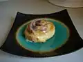 Snúður Cinnamon roll topped with melted chocolate