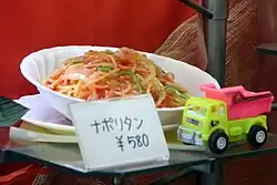 • with tomato ketchup, wieners, sliced onion and green pepper (called "naporitan" or "napolitan")