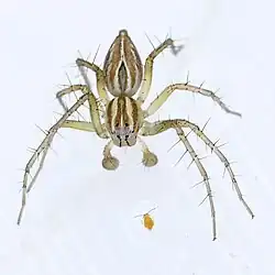 1. ^ "Family: Oxyopidae Thorell,1870". World Spider Catalog Version 20.0. Natural History Museum Bern. 2024. doi:10.24436/2. Retrieved 2024-05-05.
