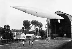 No. 13 (airship) – A curious composite craft, consisting of an ovoid hydrogen-filled envelope 19 m long, 14.5 m diameter and capacity 1902 m3, with a second conical envelope of 171 m3 attached underneath: this was filled with air which could be heated by a burner.[32] Destroyed in the hangar during a storm.[6]