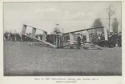 Oiseau de Proie II (airplane) — Modification of the previous model with varnished wings and without the rear wheel. It took off on October 23, 1906 at 16h45m, staying 6s in the air, reaching a height of 3m and crossing 60 meters, winning the Archdeacon Award.[36][35]