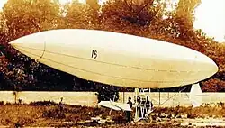 No. 11 (balloon) – No. 11 was a dirigible balloon with an envelope 34 meters long, a volume of 1,200 m', with a 16HP engine, being capable of holding five people (including the pilot). It was brought by an American.[28]