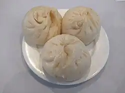 Baozi / bao Baozi Salty bao: a steam bun filled with chicken or pork, Chinese sausage, black mushroom, and soy egg (dizef roti)[13]