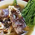 Kaolao เกาเหลา A soup of Chinese origin, usually containing offal, often pork liver and intestines, also boiled eggs, and other meats such as crispy pork. Alternatively, at regular noodle soup shops, it can also be as a regular Thai-Chinese noodle soup but then served without any noodles.