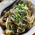 Kaeng pli แกงปลี North A northern Thai curry made with chopped banana flower and pork.