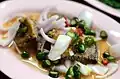 Kuai-tiao nam ก๋วยเตี๋ยวน้ำ Wide rice noodle soup A soup of wide rice noodles, often with minced pork, pork balls or fish balls.