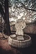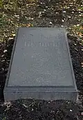 During the early Soviet period a number of monuments were stolen or destroyed. The cemetery was officially closed for burials in 1927, though they continued until 1932, and it was decided to turn it into a necropolis museum, displaying historically and artistically significant graves.[2][1] Alongside this was concept of gathering together the graves of the friends and contemporaries of Alexander Pushkin for the 1937 centenary commemorations of the poet's death. The architectural and planning department of Lensovet, the city administration, was tasked with creating a memorial park project.[2] Plans were drawn up by architects E.N. Sandler and E.K. Reimers, with further input from the city's chief architect L.A. Ilyin.[2] The Funeral Affair Trust was established to run the necropolis museum, including removing abandoned gravestones for sale as building materials.[4] The reconstruction radically altered the nature and appearance of the Tikhvin cemetery. With the intention being to create an "artists' necropolis", graves of those from other sections of society were removed. Fewer than a hundred of the original monuments were preserved.[2] Meanwhile, the remains of prominent artists, sculptors, composers and musicians were reburied in the cemetery. Among them were personal friends of Pushkin, including Konstantin Danzas, Anton Delvig, and Fyodor Matyushkin.[2]