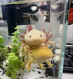 There are a wide range of frogs , salamanders and caecilians that can be kept a pets in an aquarium . Many of these are not found in the pet trade . This is usually because they're either too big for most commercial aquariums (ex: giant salamanders ), endangered (ex: achoques ), haven't entered the pet trade yet, or a mix of the three.