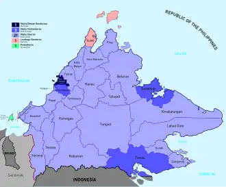 - ^ Although Kudat has a Town Board, Kudat is still a district due to the presence of a District Office there. At present, Kudat District Officer is, by law, Kudat Town Commissioner.