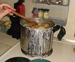 | Dum aloo | Indian subcontinent | Potatoes, usually smaller ones, are first deep fried, then cooked slowly at low flame in a gravy with spices.[8] | |