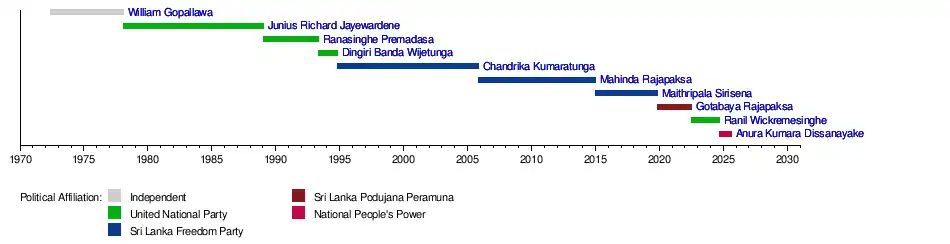 Anura Kumara DissanayakeRanil WickremesingheGotabaya RajapaksaMaithripala SirisenaMahinda RajapaksaChandrika KumaratungaDingiri Banda WijetungaRanasinghe PremadasaJunius Richard JayewardeneWilliam Gopallawa