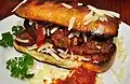 Chili burger United States Hamburger, with the patty topped with chili con carne.